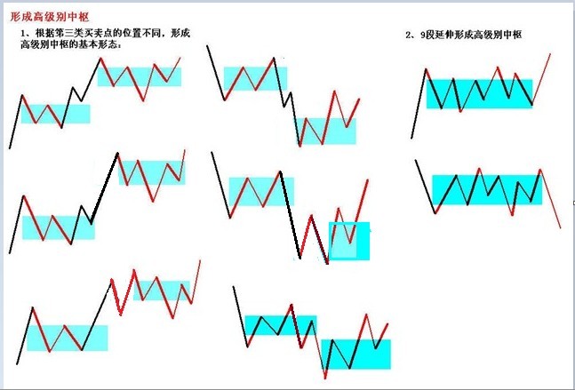 (注:前段落讲述3类情况;1、中枢延伸; 2、新生不重叠本级别中枢; 3、 新本级别中枢波动触及前中枢延续波动区间产生高级别中枢)
