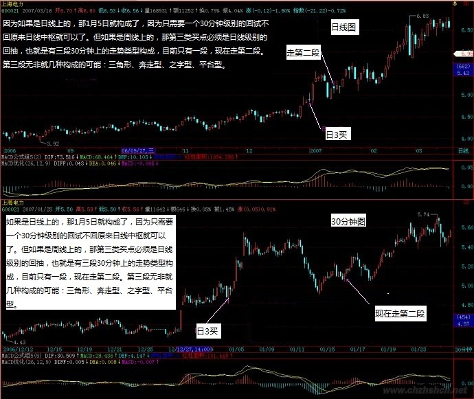 其次,该股并不构成一个精确的三类买点,因为有所重叠。反而是去年11月在月线上有一个精确的第二类买点,目前的上扬与高买点有关。