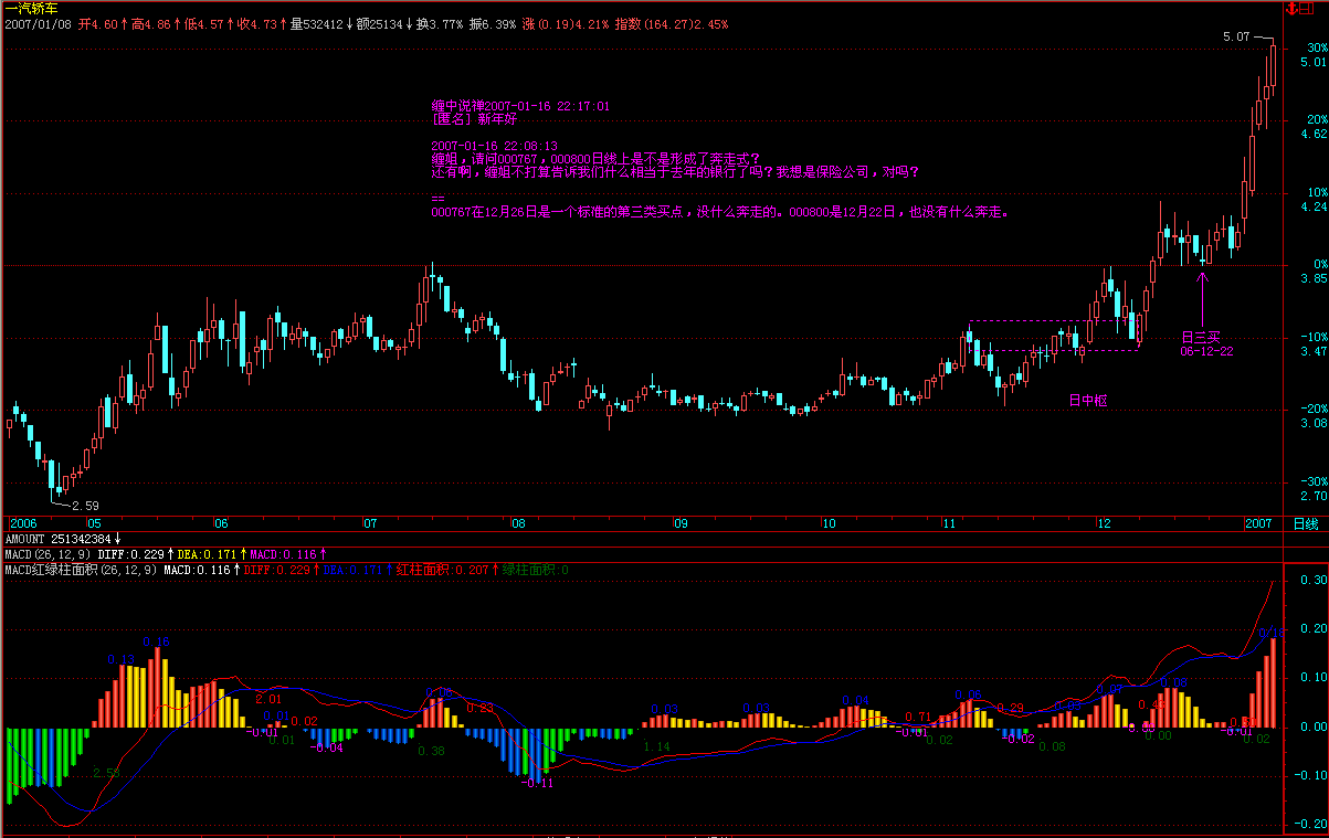 请问缠姐,你这里所说的A,B,C分别是那三段?本来以为是A段:12.11-12.20,B段:12.21-12.28,C段:12.29-2007.01.05可好像跟你说不太一样,我说得B段明显不是上冲。请缠姐告知分别指的那三段?如果理解了这个,那000600后来的急拉应该跟这是一样的道理的。